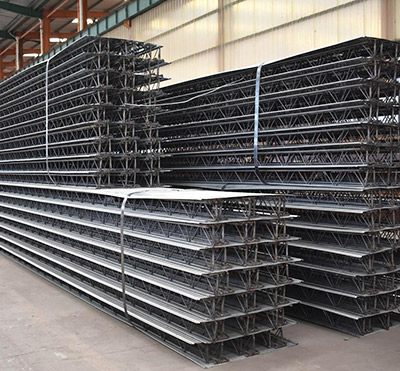 2、桁架樓承板均為在工廠預制成型并分組,水平運輸?shù)绞┕がF(xiàn)場后,工人只需按編號在C型檁條上進行搭梁并組合鋪設即可,與現(xiàn)澆混凝土板和金屬壓型板相比節(jié)約了大量的人工現(xiàn)場綁扎鋼筋的步驟,現(xiàn)場作業(yè)量大幅降低,從而節(jié)約人工資源。