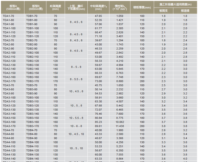 關于鋼筋桁架樓承板A和B是目前的主要推廣的。鋼筋桁架樓承板產品有兩種,a型產品寬度590mm,B型產品寬度600mm,接下來小編為大家介紹一下這兩種產品的具體型號、尺寸和截面系數。